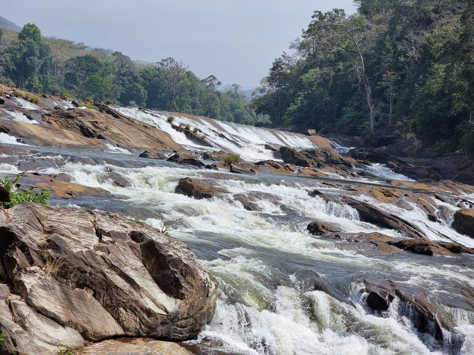 A peaceful waterfall destination close to Athirappilly with scenic greenery.